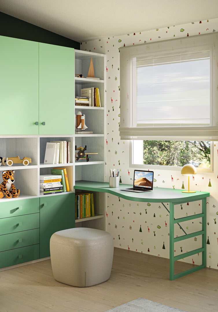 Soluzione pratica e componibile per una cameretta in linea con le esigenze del bambino.