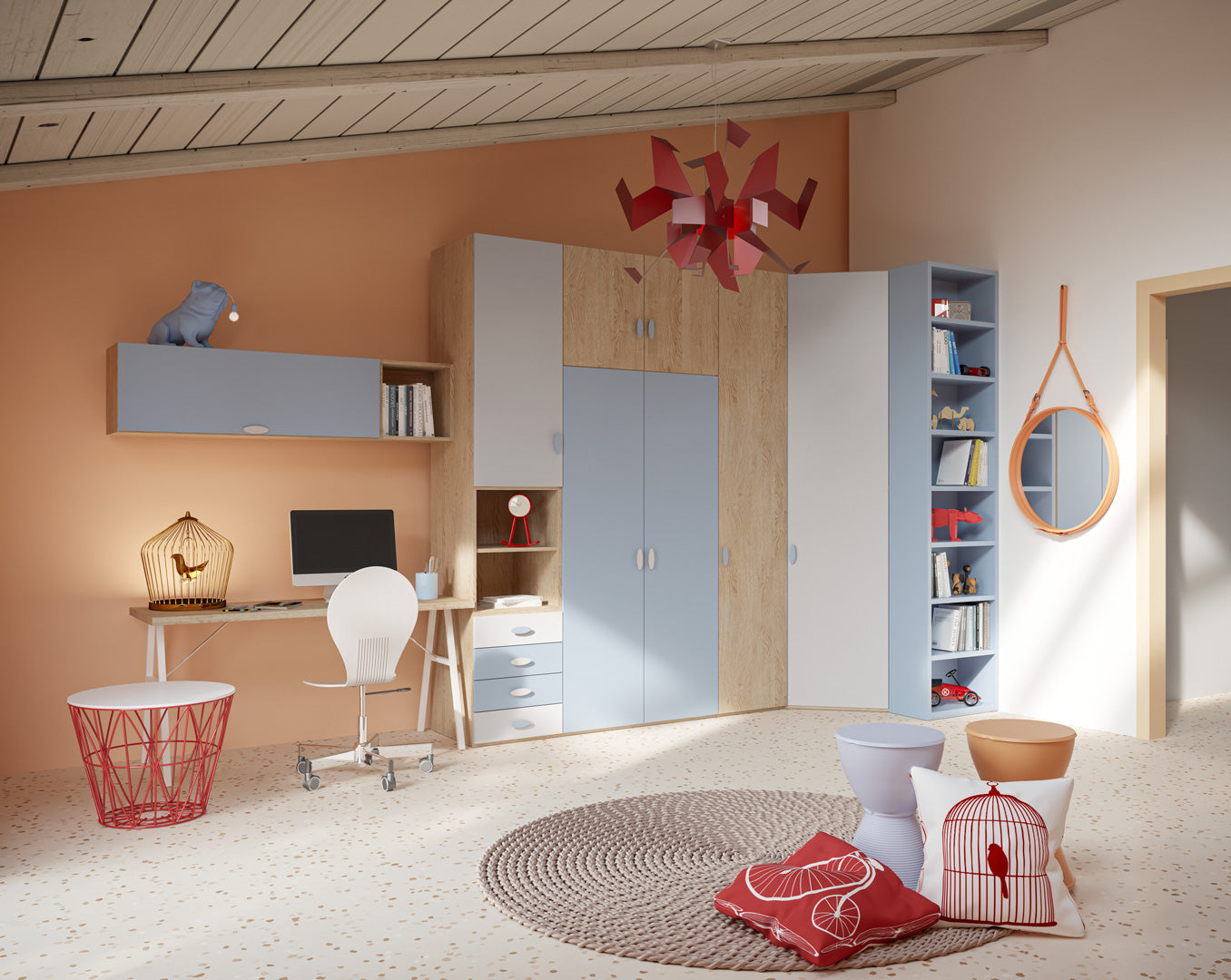 Cameretta con armadio battente con letti trasformabili, una soluzione salvaspazio per arredare spazi dalle dimensioni contenute.