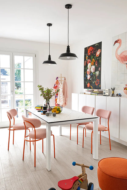 Per creare spazio ad un pranzo conviviale, Dorian è il tavolo perfetto! Allungabile con fianchi a sezione arrotondata in legno o metallo verniciato. Ha una allunga interna che si rivela tirando il tavolo dal ponte gambe grazie alle pratiche rotelle nascoste. L'ampiezza delle combinazioni e dimensioni creano un tavolo versatile capace di adattarsi ad ogni esigenza estetica e funzionale.