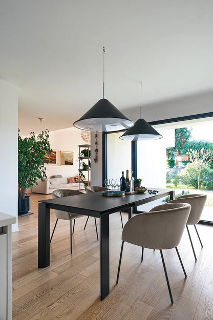 GATE è il tavolo dalla forte personalità: basamento in metallo, piani in ceramica o vetro. Estremamente pratico perché allungabile tramite un meccanismo semplice e integrato nella struttura, adatto ad ogni esigenza.
